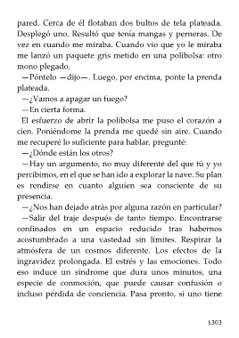 pared. Cerca de él flotaban dos bultos de tela plateada.