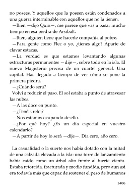 —Bien —dijo Quin—, me parece que vas a pasar mucho