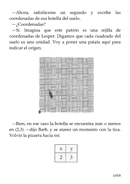 en (2,3) —dijo Barb, y se atareó un momento con la tiza.