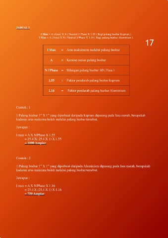 I Max = A (Area) X N ( Neutral )/ Phase X 1.16 ( Bagi palang busbar Aluminium ).