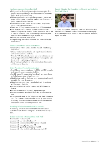 independently as possible while they are at the institute. has set up a ‘Committee on Disability’ at the school to provide • Special hostel accommodation at the MHU and PhD block for