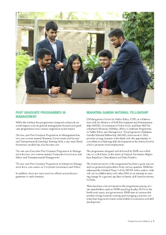 The two-year Post Graduate Programme in Management has Gandhi National Fellowship (MGNF), announced in 2019,