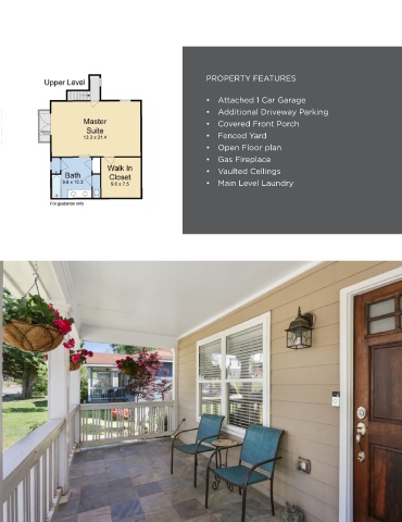 PROPERTY FEATURES • Attached 1 Car Garage • Additional Driveway Parking • Covered Front Porch • Fenced Yard • Open Floor plan • Gas Fireplace • Vaulted Ceilings • Main Level Laundry