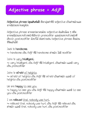 Adjective phrase (คุณศัพท์วลี) คือกลุ่มค าที่มี adjective เป็นค าหลักและ