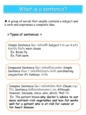 Compound Sentence ได้แก่ ประโยคที่ประกอบด้วย Simple