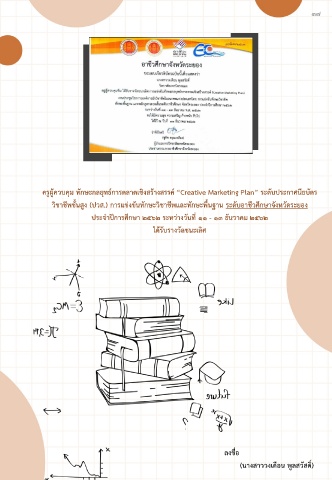 ครูผู้ควบคุม ทักษะกลยุทธ์การตลาดเชิงสร้างสรรค์ “Creative Marketing Plan” ระดับประกาศนียบัตร