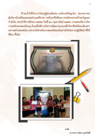 ข้าพเจ้าได้รับรางวัลครูผู้สอนดีเด่น ระดับเหรียญเงิน ของสมาคม