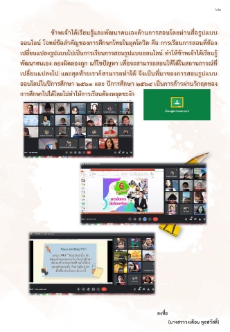 เปลี่ยนแปลงรูปแบบไปเป็นการเรียนการสอนรูปแบบออนไลน์ ท าให้ข้าพเจ้าได้เรียนรู้