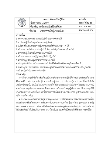 ชื่อหน่วย เทคนิคการเป็นผู้น าสมัยใหม่ คาบรวม 8 คาบ