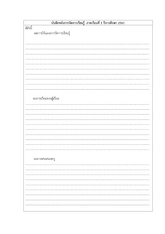 บันทึกหลังการจัดการเรียนรู้ ภาคเรียนที่ 1 ปีการศึกษา 2561