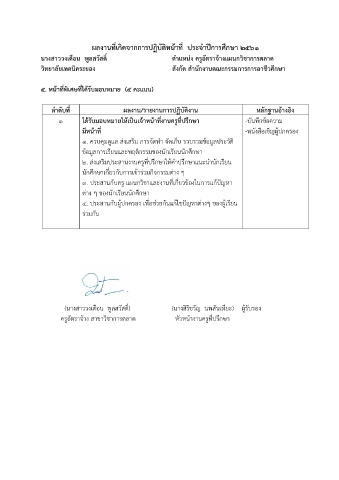 ๔. ประสานกับผู้ปกครอง เพื่อช่วยกันแก้ไขปัญหาต่างๆ ของผู้เรียน