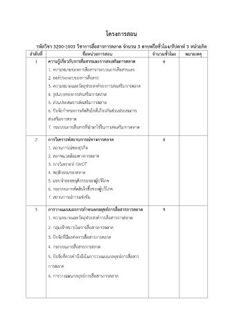 รหัสวิชา 3200-1003 วิชาการสื่อสารการตลาด จ านวน 3 คาบหรือชั่วโมง/สัปดาห์ 3 หน่วยกิต