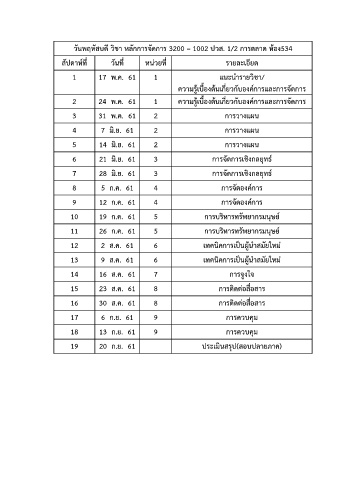 สัปดาห์ที่ วันที่ หน่วยที่ รายละเอียด