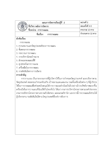 ชื่อหน่วย การวางแผน คาบรวม 12 คาบ