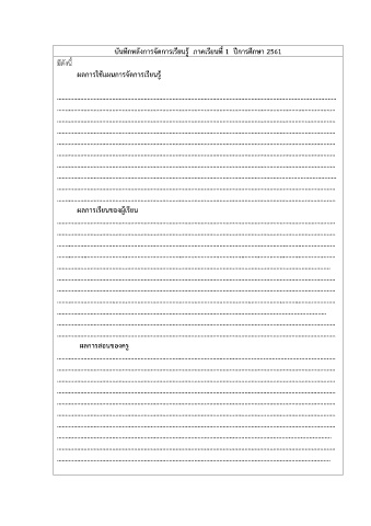 บันทึกหลังการจัดการเรียนรู้ ภาคเรียนที่ 1 ปีการศึกษา 2561