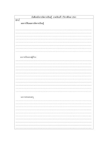 บันทึกหลังการจัดการเรียนรู้ ภาคเรียนที่ 1 ปีการศึกษา 2561