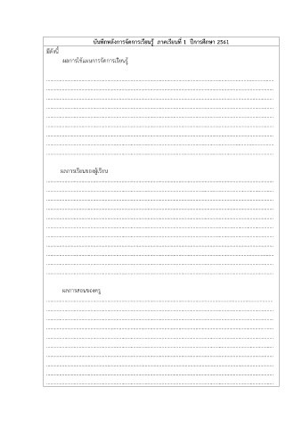 บันทึกหลังการจัดการเรียนรู้ ภาคเรียนที่ 1 ปีการศึกษา 2561