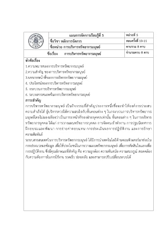 ชื่อเรื่อง การบริหารทรัพยากรมนุษย์ จ านวนคาบ 8 คาบ