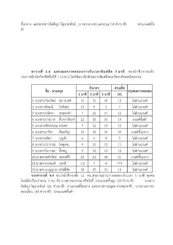 จากตารางที่ 4.4 พบว่านักศึกษาทั้ง 12 คน สามารถผ่านการทดสอบจับเวลา 5 นาที ทุกคน