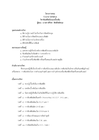 ศึกษาและปฏิบัติเกี่ยวกับหลักการพิมพ์อังกฤษแบบสัมผัส การพิมพ์แป้นอักษร แป้นตัวเลขสัญลักษณ์