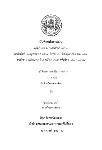 รายวิชา การพัฒนาบุคลิกภาพนักการตลาด รหัสวิชา 3202 0006