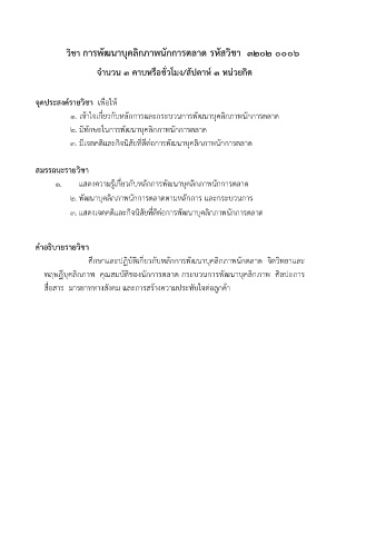 วิชา การพัฒนาบุคลิกภาพนักการตลาด รหัสวิชา 3202 0006