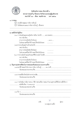 บันทึกหลังการสอน สัปดาห์ที่ 6