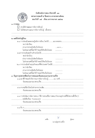บันทึกหลังการสอน สัปดาห์ที่ 13