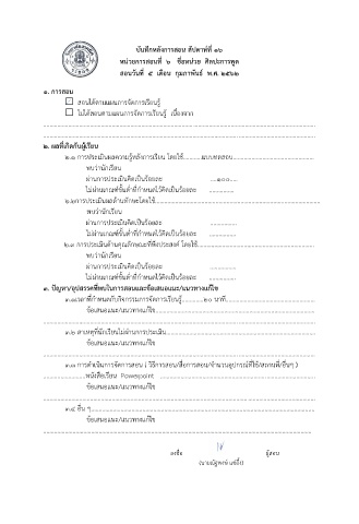 บันทึกหลังการสอน สัปดาห์ที่ 16