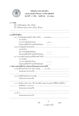 บันทึกหลังการสอน สัปดาห์ที่ 4