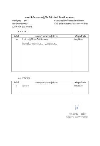 ผลงานที่เกิดจากการปฏิบัติหน้าที่ ประจ าปีการศึกษา ๒๕๖1