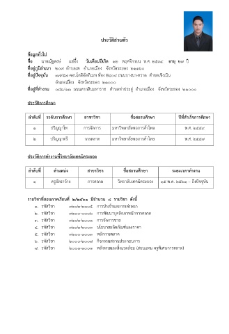 ประวัติการท างานที่วิทยาลัยเทคนิคระยอง