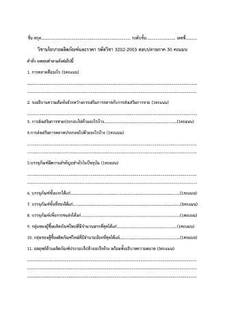 วิชานโยบายผลิตภัณฑ์และราคา รหัสวิชา 3202-2003 สอบปลายภาค 30 คะแนน