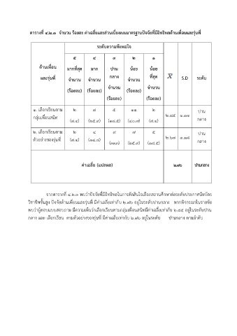 ตารางที่ ๔.๒.๓ จ านวน ร้อยละ ค่าเฉลี่ยและส่วนเบี่ยงเบนมาตรฐานปัจจัยที่มีอิทธิพลด้านเพื่อนและรุ่นพี่