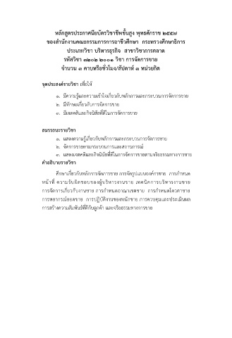 ประเภทวิชา บริหารธุรกิจ สาขาวิชาการตลาด