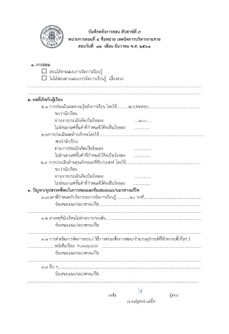 บันทึกหลังการสอน สัปดาห์ที่ 9