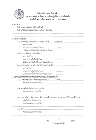 บันทึกหลังการสอน สัปดาห์ที่ 6