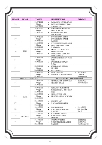 MINGGU BULAN TARIKH GURU BERTUGAS CATATAN