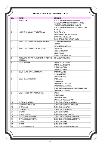 SENARAI COACHING DAN MENTORING