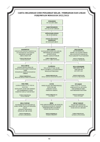 CARTA ORGANISASI GURU PENASIHAT KELAB / PERMAINAN DAN LOKASI PERJUMPAAN MINGGUAN 2022/2023 82
