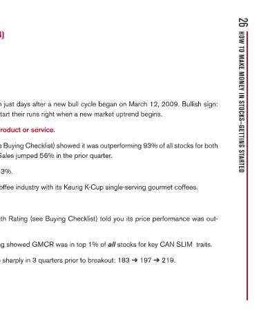breakout. Green Mountain launched its new run just days after a new bull cycle began on March 12, 2009. Bullish sign: Stocks that go on to big gains often start their runs right when a new market uptrend begins. Green Mountain’s 93 EPS Rating (see Buying Checklist) showed it was outperforming 9