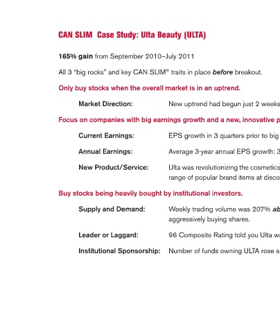 breakout. New uptrend had begun just 2 weeks earlier. 188%. 62% ➔ EPS growth in 3 quarters prior to big move: 56% ➔ Average 3-year annual EPS growth: 31%. Ulta was revolutionizing the cosmetics retail business with a Home Depot–style, big-store format featuring a wide range of popular brand