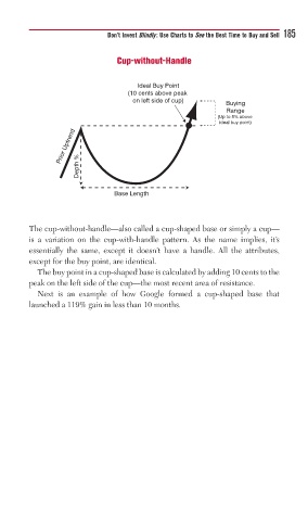 The buy point in a cup-shaped base is calculated by adding 10 cents to the