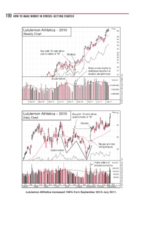 Lululemon Athletica – 2010 Buy point: 10 cents above Price 50