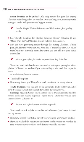 ■ ✔ Make a game plan for stocks on your Near Buy Point list.