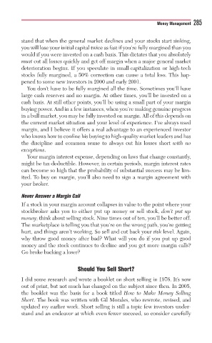 large cash reserves and no margin. At other times, you’ll be invested on a
