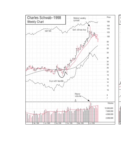Price Price Largest daily Largest daily i t g L Charles Schwab–1998 gain: up 11% % 1 p : 190 Daily Chart in one day in one day y d n n 160 Exhaustion gap p p p p Exhaustion gap u x 140 120 150 100 Up 60% in 8 days s a 8 0 p 80 and 7 out of 8 of 8 tof and7ou 7 n