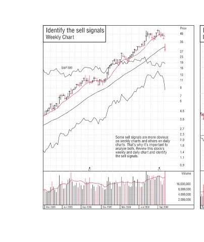 Some sell signals are more obvious on weekly charts and others on daily charts. That’s why it’s important to analyze both. Review this stock’s weekly and daily chart and identify the sell signals. 4/1 Jun 2006 Mar 2006