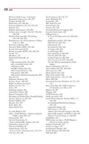 Relative price strength, 148–149, 188–190, Security Pacific Bank, 420