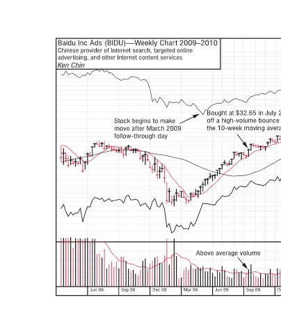Chinese provider of Internet search, targeted online Baidu Inc Ads (BIDU)—Weekly Chart 2009–2010 advertising, and other Internet content services Ken Chin Stock begins to make move after March 2009 follow-through day Dec 08 Sep 08 Jun 08